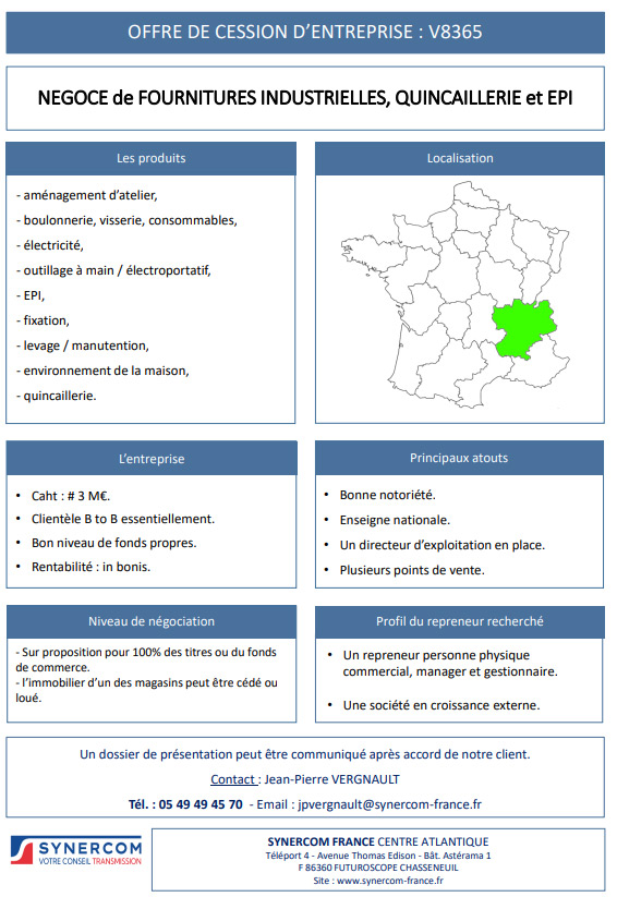 Accueil > Immobilier, commerces, équipements, PME-PMI > Négoce de fournitures industrielles, quincaillerie