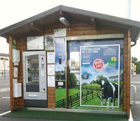 Le chalet, installé sur le parking sur centre E. Leclerc de Parthenay est un investissement lourd : 50000 euros. Heureusement, nous avons pu bénéficier des subventions du FEDER et de la Région (6000 euros chacun). Le lait cru vendu au distributeur est réapprovisionné chaque jour (sauf le dimanche). Les deux tanks réfrigérés peuvent contenir chacun 300 litres, mais nous ne les remplissons qu’au tiers puisqu’en moyenne nous vendons une trentaine de litres par jour à un euro le litre. Des bouteilles en plastique ou en verre et aussi des gobelets sont proposés également dans le distributeur ; un service en plus. »