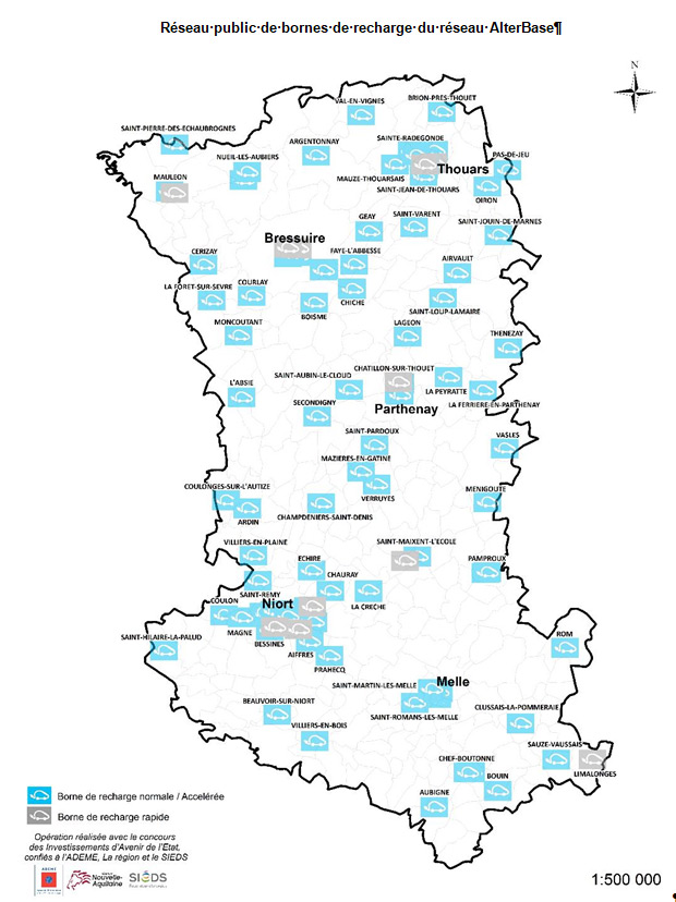 Stratégique, le choix des emplacements s’est effectué en concertation avec le Conseil départemental, les communautés de communes, ainsi que les propriétaires/aménageurs de zones commerciales. Ces bornes seront opérationnelles rapidement, dès le 1er semestre 2019 sur Niort, Bressuire, Mauléon, Thouars, Châtillon-sur-Thouet, Limalonges, Bessines et Saint-Maixent-l’École.